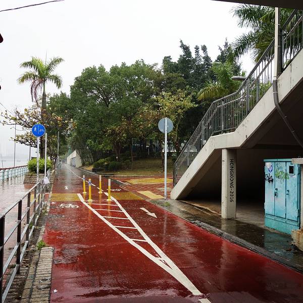 路线:东铁线大围站→沙田吐露港单车径(马料水段→大学段→科学园段→白石段→绿茵山庄段→白鹭湖段→大埔滘段→元州仔段)→ 大埔海滨公园。 难度:★。 时长:如果沿途不停,30分钟-45分钟。 大围站A出口可租车,45港元一天。 1、这是一条几乎没有任何难度的路线,所以即便不是专业的骑行者、没有专业的装备,也可以当做一条观光路线来骑。 事实上,在东铁线大围站,A出口就有租车服务,一辆车一天45港元,比在红树林租车还便宜。 2、沙田吐露港单车径的沙田站会比较复杂,主要的出入口是连接车站的商场,另一个往排头村的出入口是交通交汇处, 有小巴、的士、巴士的站头在一起,如果要往城门河岸的主要单车径,中间因为有公路的关系,单车要绕路穿过去,进入公共屋村, 再找路到城门河岸,对一些不熟悉路线的车友是颇花时间的事情。所以,从大埔或大围出发是比较好的选择。 3、吐露港单车径由沙田市中心经科学园接驳至大埔墟,再伸延至大埔海滨公园。这是一条规划和设施比较到位的单车径, 红色路面清楚地区分了单车径与普通道路,而且沿线每隔一段就会出现遮雨棚供车友休息,很是贴心方便。同时,这一路可以欣赏 到美丽的吐露港海滨风光,有时候还能看到香港赛艇协会的训练场面。 4、这条路线所在是新界东北部的大埔区,虽然大埔中心已经相当现代化,但外围的郊野乡村仍然保留着很多原始面貌,古木苍天, 祠堂庄严。比方说元洲仔的大王爷庙,在骑行过程中就可以见到,就在元洲仔旧政务司官邸旁边。它是在清朝中叶建的,从上世纪30年代开始 ,每年五月初六大王爷诞期,渔民都会搭棚演戏,成为当地村民的一大盛事。 5、大埔海滨公园很大,所以骑车到达这里之后可以好好地休息一番。公园有一条1.2千米的海滨步行径,有面向吐露港的风筝放飞区, 还有露天剧场等。这里也是每年大埔区龙舟竞渡的举行地点。公园内还设有一座30多米高的回归纪念塔,可以登上塔顶俯瞰整个大埔海滨和 吐露港。 虽然雨骑十分不爽,但是好歹我的薄如蝉翼的雨衣也能承受,大不了骑慢点,可千万别下大雨了啊,于是下大雨了!WTF! 赶紧找个桥洞避雨,一等就等到11点,无聊之中拍点过往的单车勇士们! ps:照片有下角那辆锁在在铁杆上的单车,那仁兄本来是跟我一路骑的,雨下大了之后,直接把车锁在那里,走了。。。。。走了。。。。
