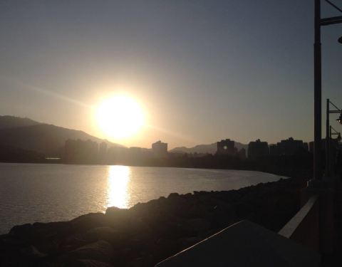 香港的水面都被保护得很好没有人乱丢垃圾落日的余晖照在水面上很美 2016-09-28 04:37