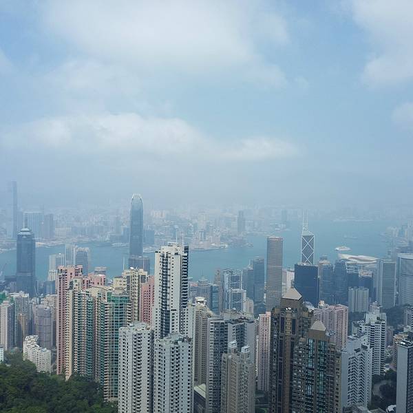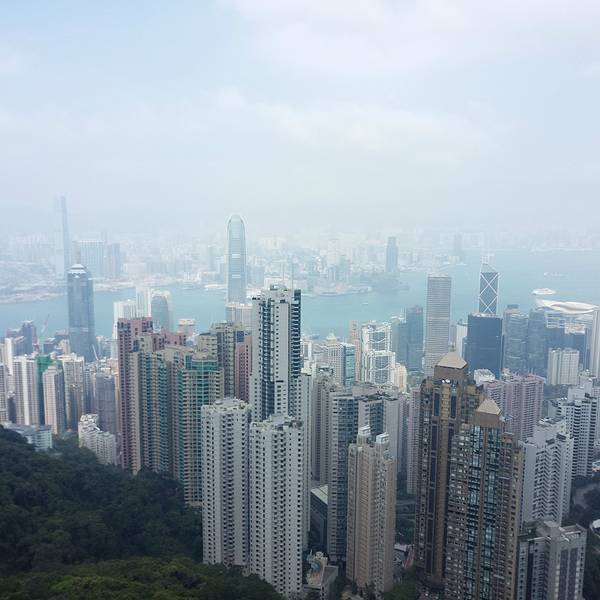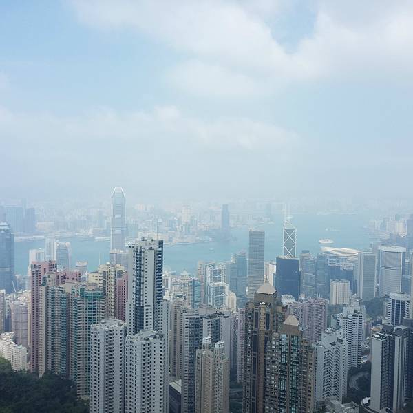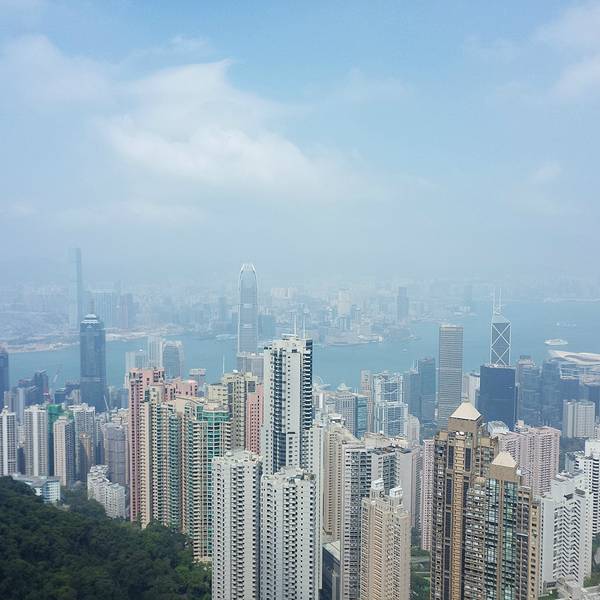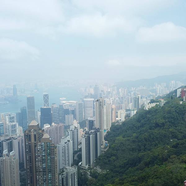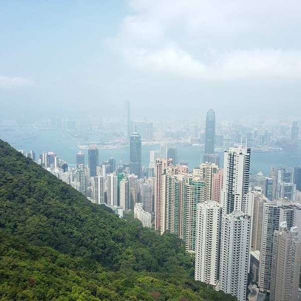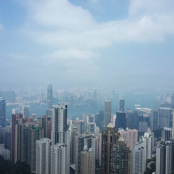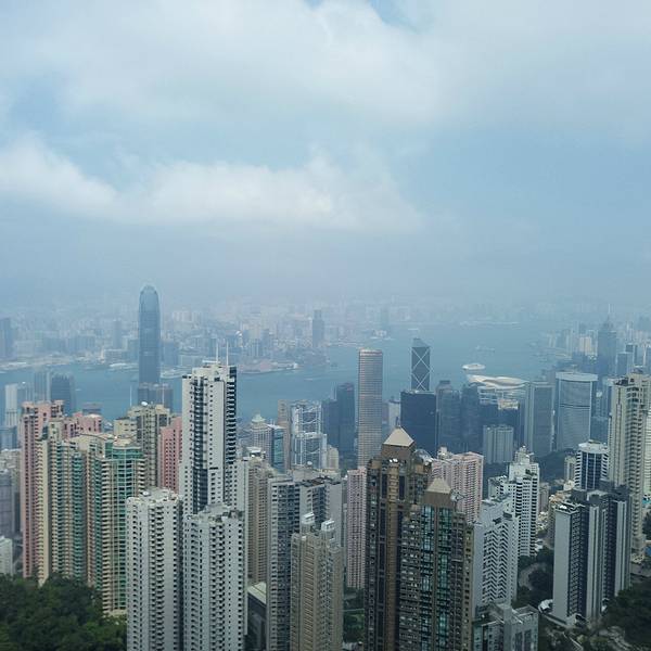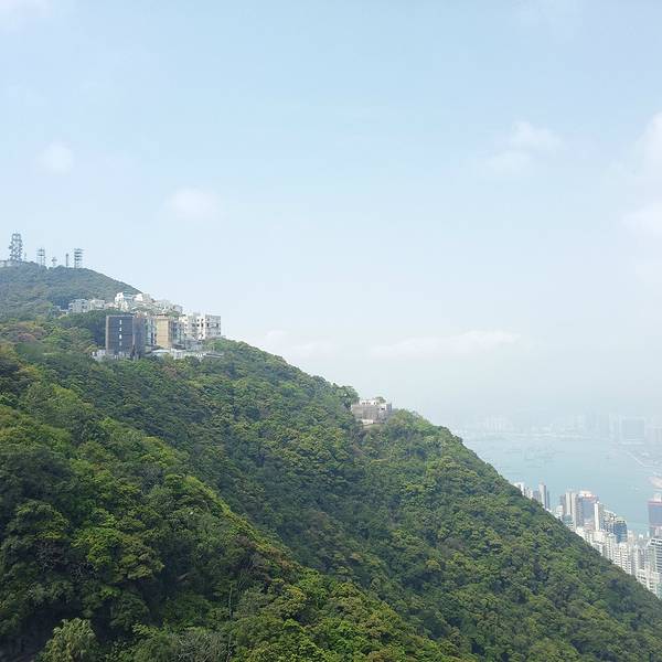 山顶大楼集购物、餐饮于一体,露天顶层是俯瞰维港最佳的位置。这个高度才能更真切的看到维港两岸的楼有多么的高,有多么的密,数量多么大,简直不胜其数,在这寸土寸金的地方反倒“逼迫”“画家们”创作出这样一幅美丽的画卷,画风整顿,纯蓝的背景下楼宇鳞次栉比,线条简单,山头翠绿,让港湾变得更加宁静。
