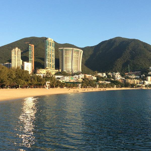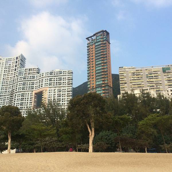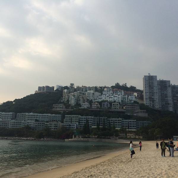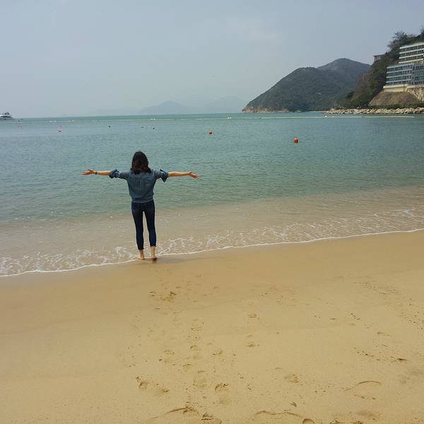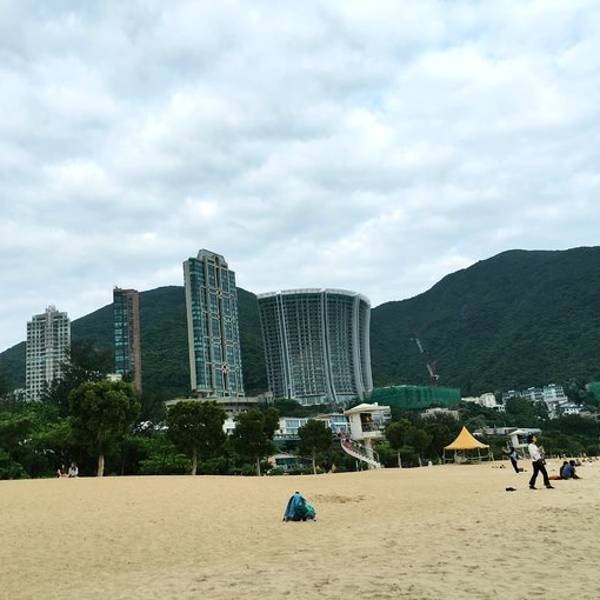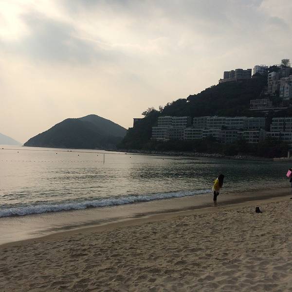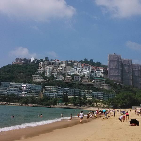 公交车就真的很享福了,上车空调冷气十足,城巴一般都是双层车,于是上车我俩就直奔二层前排去了。在香港坐双层车真得很爽,去浅水湾的路上一路都是在走山路,上坡下坡体感很强,有点过山车的感觉。前后大约用时1个小时,在浅水湾海滩下车就到了。下车后沿着道边走,看见台阶向下走,就到了浅水湾了。下一级台阶先会经过街心花园,看景色有些美丽,就先拍了几张照片。之所以选择来这里看看,就是听说这边有名的富人区,想来看看这边华丽丽的楼房建筑,另外一个原因就是TVB里面很多名场景,哈哈涨一涨姿势~~过了街心公园,再往前走看见台阶下去就看到海滩了。比想象中略失望一些,因为沙滩上的沙子不细软,很粗糙扎脚。但还在海湾较大,比较宽广,视野也比较出色。沙滩旁都是一栋栋海景房。有独栋别墅也有楼房,基本依山路而建,总觉得晃晃悠悠的。去的时候大概3点来钟,当时游泳的人很多,来这里的游客有很多一部分都是外国人来度假晒肤色,我们觉得天气不适合下水,就没带着泳衣体验一下海水。我们一直在浅水湾耗到6点才离开,等没有游泳的了,赶紧拍了一张全景,远处可以看见很多小岛,远处有船只,不论渔船还是货船。身后有救生员塔,所以游泳很安全。到了晚上5,6点钟,会有广播告知游客赶紧上岸,救生员会在晚上6点后离开。我们待到6点来钟后就启程回去市里准备吃晚饭了,考虑到工作日下班高峰不能耗到太晚,况且6点钟以后的海滩,海风吹着很凉,就拎包坐车回去了。等车的时候拍下了这桩高楼,又是高耸入云,大概的有30多层,40层的样子,观察了一下那边的房子和我们的不同在于,这么高的楼房没有地基,下面仅靠几根柱子支撑,而且那么单薄,每次看这些建筑都觉得被迫害妄想症要发作了哈哈哈。