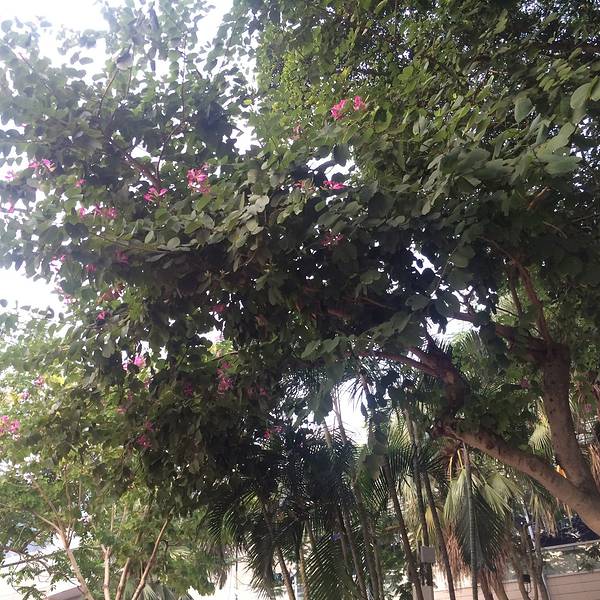 很多凳子~继续走,就看到这样的应该是可以拜神的地方~门口左边那个是财神,很多人去摸~求个好彩头~11月中下旬了,洋紫荆还开着~