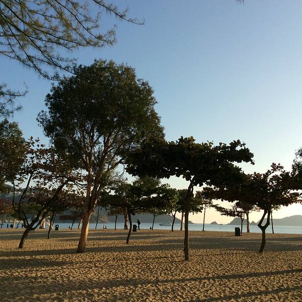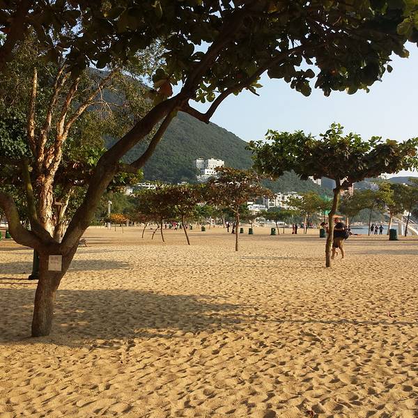 浅水湾是由一片美丽的沙滩组成,沙子不算幼沙,但还是蛮细的,沙滩上种了几排小树,顿增活力和景致的层次感,绿树的背影下,也更适合取景拍照。