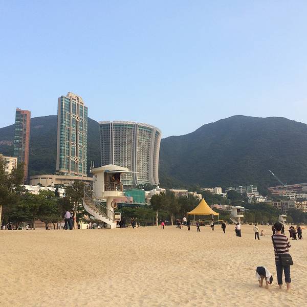 浅水湾的沙质很细,阳光曝晒后的沙滩,踩着格外舒服,热腾腾的,这里有外国的比基尼美女,享受日光浴,自在惬意,可见香港的包容开放程度。