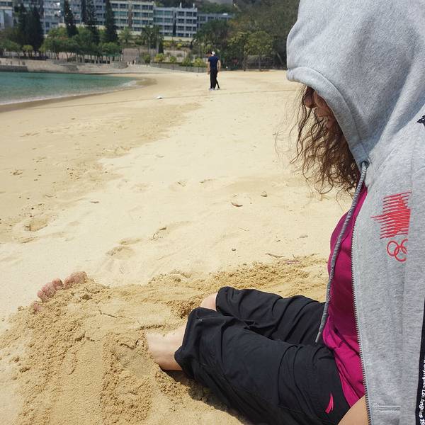 抓不住的沙坐下来休息一会,看看海也好,强烈建议大家带垫子或者布来坐