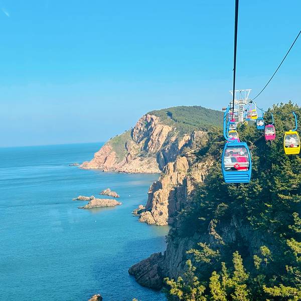 摩天岭索道分南北两线,坐的北线跨海索道,风景独特。直接上图,这里的海,颜色是纯粹的。有免费大巴车送返摩天岭索道分南北两线,坐的北线跨海索道,风景独特。直接上图,这里的海,颜色是纯粹的。一定要坐北线呦~2号来的,人很多,排队两个小时,索道也不短,坐了大概40分钟,单程的85💰每人。有免费大巴车送返。
