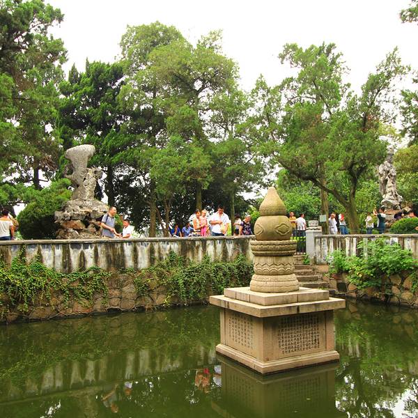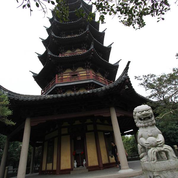 灵岩山在苏州市区西南15公里处,海拔182米,多奇石。山上的灵岩山寺相传坐落于夫差为西施建造的馆娃宫旧址上,灵岩塔前的灵芝石是山名的由来。每逢周末,苏州当地人都喜欢来此爬山,到灵岩山寺烧香祈福。灵岩山有多条上山道,主要是刻着“灵岩山景区”几字的东门登山路,和苏福路上的老登山路(从东门贴着灵岩山向左走到达)。东门进去是山脚的灵岩山馆,本为清代毕沅所建的私家园林,后毁于战火,现在看到的是现代恢复出来的。苏福路上的老登山路是不少当地人喜欢走的路,以前乾隆登山走的也是这条道,爬到山顶约需30分钟。沿乾隆登山御道拾级而上,经过继庐亭、迎笑亭、落红亭等小景点,落红亭东有印光塔院,西有西施洞,据说越王勾践与范蠡献西施给吴王夫差时曾在此等候,现在洞中供奉着观音,所以又名观音洞。再往上走300多步,能见到灵岩山又一比较有名的奇石“乌龟望太湖”,石上的脚印据说是西施常站在此眺望故乡所留。接着往上到达灵岩山寺,寺庙始建于东晋元熙二年(公元420年),现存殿宇多为清末民初建筑。灵岩山寺在主持的坚持下门票只象征性地收1元,因为一心向善,香客更加信奉寺庙,香火十分旺盛。寺东的灵岩塔又名多宝塔,是灵岩山的标志性建筑,始建于梁天监二年,南宋绍兴十七年(公元1147年)重建,塔高7层,据说顺时针绕塔三圈能获得祝福。此外,别忘了去素面部吃一碗好吃的素面。灵岩山寺西部是花园,俗称山顶花园,夫差与西施的足迹在此较为集中,有玩花池、玩月池、吴王井、石城(一段石头砌的围墙),还有梁代智积和尚修理疏通的智积井等古迹。注意灵岩山寺并不在山顶,需再向上攀登10分钟到达山顶,山顶有几块巨石,其中一块据说是西施抚琴的地方,称琴台。站在山顶往南能见到灵岩山寺、灵岩塔,往北能见到天平山,苏州城景也清晰可见。灵岩山南边的山脚有韩世忠墓;清朝诗人张永夫墓,墓碑稀奇古怪,叫“再来人之墓”;还有溪水采香泾,传说是吴王用箭射出,让宫女去太湖为西施采香草的人工河道。每年清明节前后,东南山脚的灵岩牡丹园里牡丹盛开,适合拍照,平时去的话意义不大。灵岩山东边与木渎古镇相连,可一并游览。古镇的历史同苏州古城一样悠久,镇上有好几个漂亮的古典园林。