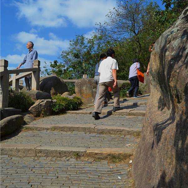 不过一般上班族脚肯定会酸,慢慢爬大概1小时,山不算很高,山中间有座寺庙,山顶处风景不错的,能看...免费的景点,下山到下山快的话半小时,不过一般上班族脚肯定会酸,慢慢爬大概1小时,山不算很高,山中间有座寺庙,山顶处风景不错的,能看到山下整个城镇,山顶的道路就不是台阶了,稍微有点小陡,可以挑战一下