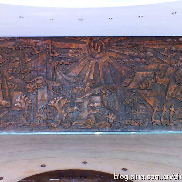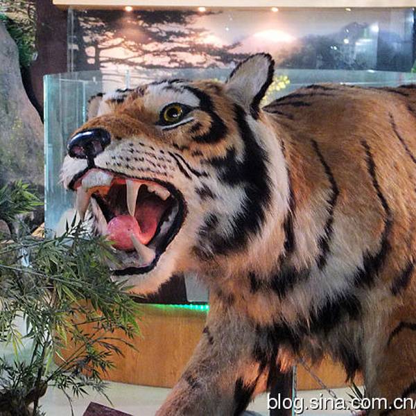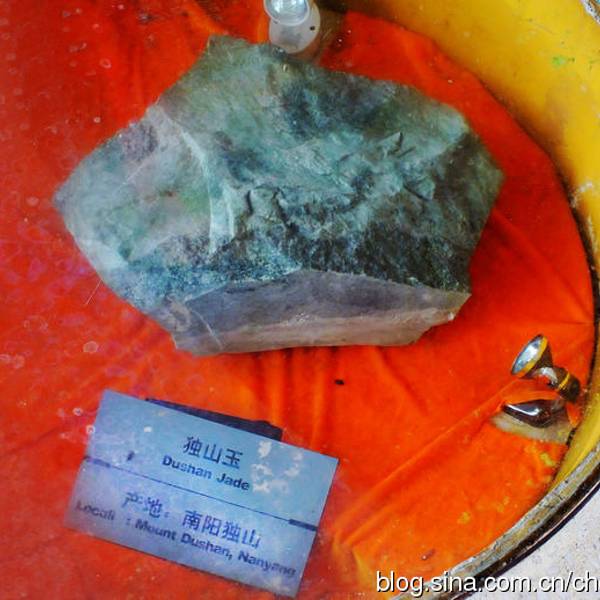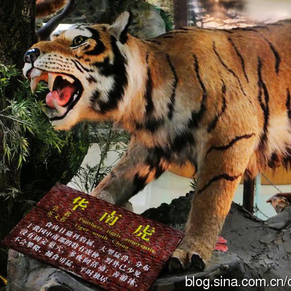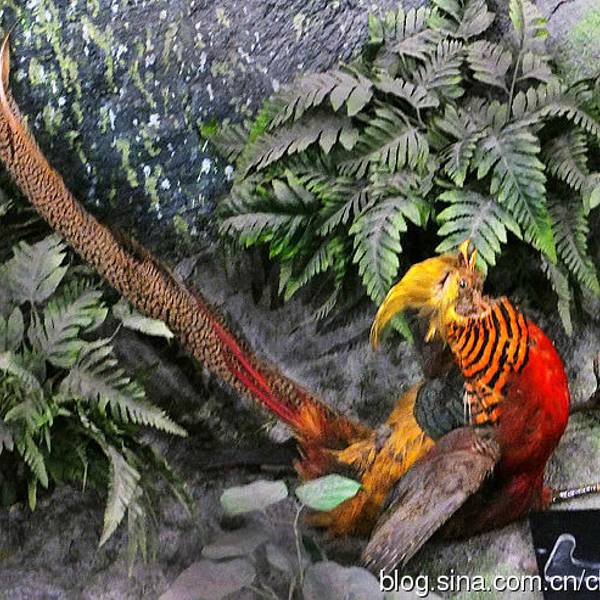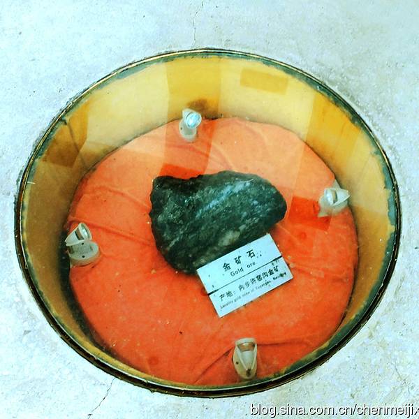 这个标本毛色斑斓,神态逼真。丹江口水库就在西峡。这里还有许多珍贵的矿藏,用圆形玻璃罩在地面上