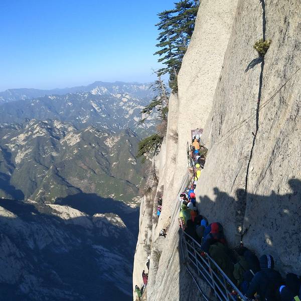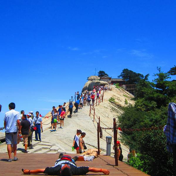 - 必须去北峰、苍龙岭和东峰,个人认为这是最美的路段,尤其是东峰的鹞子翻身,是华山最好看的景点。