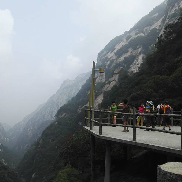 金骆驼 长空栈道只有大概30公分的破旧木板挂在山壁,游人来回的必须错锋通过素闻西岳华山为奇险天下第一山,据有探险家精神的我怎么能够错过?现代交通快捷便利,坐动车或高铁就可直达华山北站。喜欢夜爬的朋友可以带着帐篷和头灯,夜上华山,赏日出云海。我们此次选择的是晚上夜宿华山脚...素闻西岳华山为奇险天下第一山,据有探险家精神的我怎么能够错过?现代交通快捷便利,坐动车或高铁就可直达华山北站。喜欢夜爬的朋友可以带着帐篷和头灯,夜上华山,赏日出云海。我们此次选择的是晚上夜宿华山脚下,好好的休息,准备白天爬华山!我们是5点出发的,天还黑着,花180大洋开始爬!爬华山最好做好攻略,或者是买一张线路图,确定你要去的路线,因为大家时间和精力有限,是不可能在1天之内把所有地方看全的。网上有很多推荐的线路,但无论是去哪个峰,都要从中峰这个必经的线路到玉女峰。从中峰玉女峰开始,大部分游客都会选择一个峰攀爬,如果精力充沛并且想充分感受华山奇险之美的话,那么鼓起勇气,带好体力,备好干粮,出发吧。我们选择的是玉泉院—五里关—莎萝坪—聚仙台—卧牛石—都龙庙—金锁关—玉女峰—长空栈道。恰逢当天下雨,雾气蒙蒙的,爬华山一定要带的就是一次性雨衣和棉线手套,因为山中天气变化多端,打伞既不安全又不方便,华山险而陡,一双棉线手套可以加大与索道的摩擦,也不会使你的手受伤变脏,下山回来,我们的白手套都变成黑手套啦。此次最主要的目的其实就是长空栈道,长空栈道在南天门外,是华山最著名的险道之首。想爬栈道,要把所有的装备都寄存在收费处,不过寄存是不收费的,所以最好有人帮你看包。相机手机就随意啦,如果你在栈道上没有吓得腿软心颤的话,还是可以带着的。栈道会有2道安全绳,扣好一个挪动后再换另外一个。长空栈道只有大概30公分的破旧木板挂在山壁,游人来回的必须错锋通过。栈道上还有1个凹进去的洞,不敢拿相机的朋友可以让洞里的摄影师帮你照,20块一张,其实也不算贵,把你英勇的样子留下来吧。栈道的尽头还有个小庙,有个小池子写着“神仙洗手”,哈哈,要不要沾点仙气回家呢~ 展开