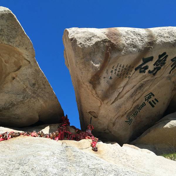 - 北峰上的"华山论剑"石碑人会比较多,没必要排队,后面还有至少5个石碑可以拍照,有些甚至没有人排队。