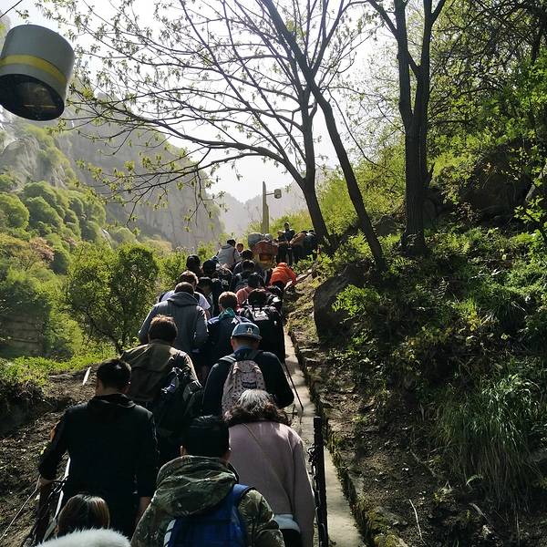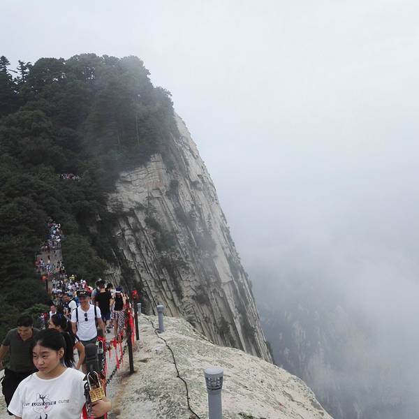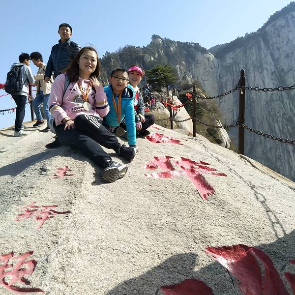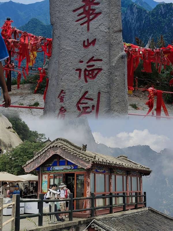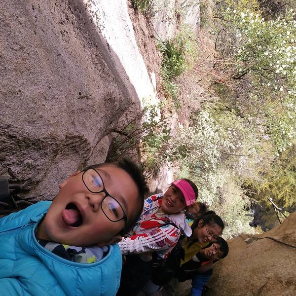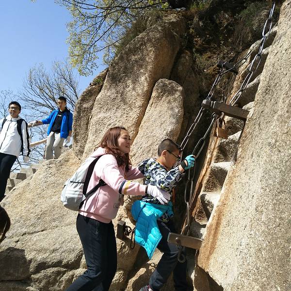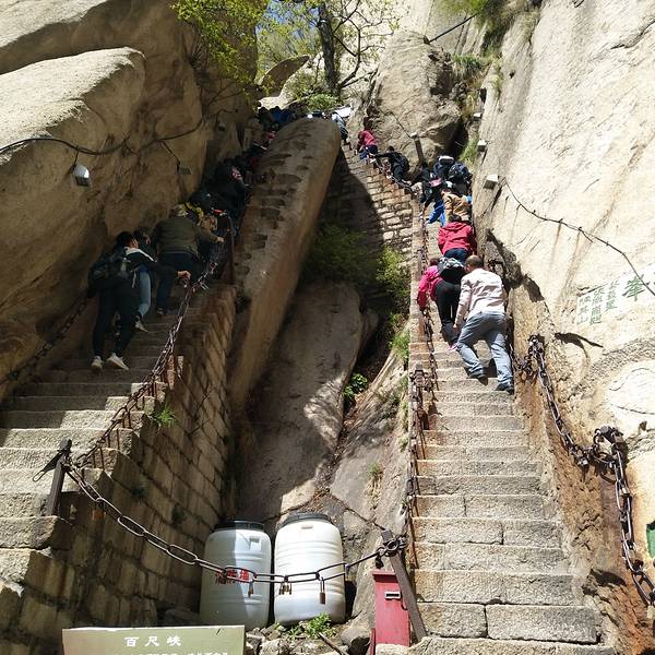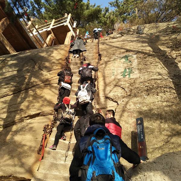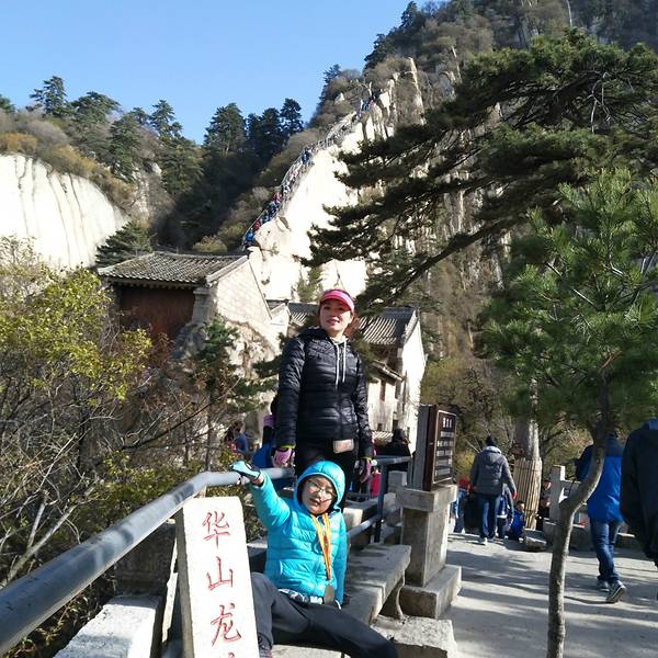 金骆驼 对于膝盖不好的登山者是个挑战。这个最长的栈道远远往去很壮观。全是悬崖绝壁。不过爬完以后特别有成就感华山位于陕西省渭南市华阴市玉泉路南段。从西安高铁站有前往华山北的动车(大概一小时),但是我们错过了时间点,只能选择自驾,大概2个小时。到了华山已经是傍晚了,住在了玉泉院的木与石艺术酒店,这边离步行上...华山位于陕西省渭南市华阴市玉泉路南段。从西安高铁站有前往华山北的动车(大概一小时),但是我们错过了时间点,只能选择自驾,大概2个小时。到了华山已经是傍晚了,住在了玉泉院的木与石艺术酒店,这边离步行上山的入口就几百米。吃饭购物都比较方便。第二天一早,酒店用餐完毕。带上雨衣☔,足够的水、食物,手套(必备)开始爬山。因为不清楚情况跑跑到了游客中心。其实玉泉院这里的入口就可以买票(门票旺季180,淡季100)。体力不好的同鞋建议坐索道上西峰,再从北峰下。我们的路线是步行北峰上再西峰索道下,大约7个小时,真是累死人的节奏!不过爬完以后特别有成就感。一路的铁链上挂满了平安锁快到北峰的时候,我摔了一跤,后来想起来还挺害怕的。华山有句话:爬山不看景。还是有道理的。慕名而来的有很多外国人,在华山的面前外国的小朋友也表现出了惊人的毅力! 展开