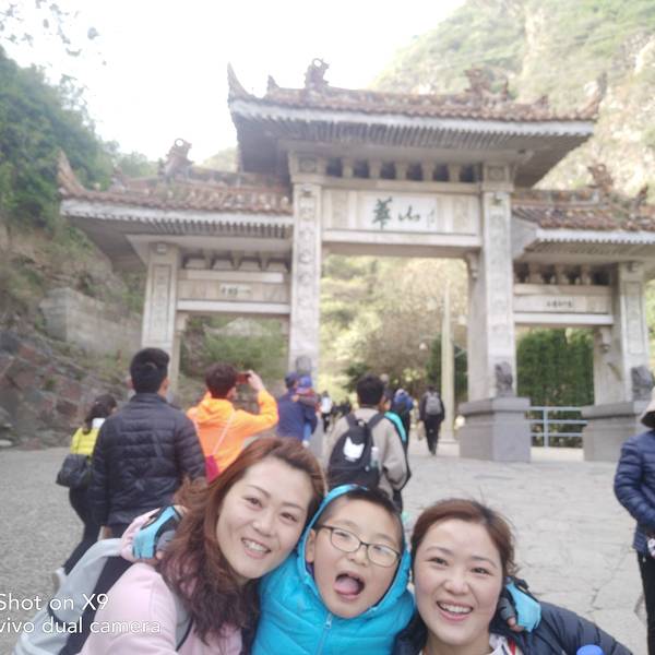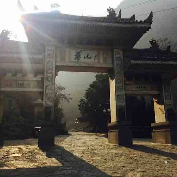 从华山下高速之后沿着40米宽的迎宾大道进入景区只有五分钟车程。