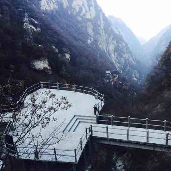 金骆驼 山庄老板赠送的地图,超级实用,不走回头路,全部景点走完。翻看上上图,才发现自己就在悬崖边照的整个酒店住的就只有我们三是住山上的,不住宿的都早走了,就我们还在这里晃荡...山庄老板赠送的地图,超级实用,不走回头路,全部景点走完。开始至金锁关都不需要看路线,玉泉院至千尺幢、百尺峡、北峰,擦耳岩、...整个酒店住的就只有我们三是住山上的,不住宿的都早走了,就我们还在这里晃荡...山庄老板赠送的地图,超级实用,不走回头路,全部景点走完。开始至金锁关都不需要看路线,玉泉院至千尺幢、百尺峡、北峰,擦耳岩、苍龙岭,一直到金锁关,没有分路。过了金锁关,穿过五云峰饭店上到一个平台往左东峰,往右西峰,顺着左手边走顺时针方向经南峰至西峰。一个景点都不会落下,一步多的路都不会走。出票时间10:00,意味着我们这时候开始登山了,到东峰饭店18:30左右,我们照片拍得多,节奏也还慢,大家比对参考时间吧,如果当天要下山的,西峰索道好像运营到19:00,可能节奏要快不只一点吧点。正式开始,小兴奋...华山一开始好长的路段是这样的平路,没有石梯,后面渐有陡坡,个人觉得比石梯爬着更累人。这个时间风景很漂亮,山间时不时的有各种颜色的花花。爬到后面体会这几个字的深刻含义———上、下都必须求助旁边的铁索。。。路边时不时的有石刻字,有些路段标的有阶梯数还是长度,没看懂,因没走几步手机就摔坏了,没拍下来。途中碰到几个小朋友下山的,佩服小朋友们,可能有老师带队,但此时都走散了,攀谈了几句,得知是江苏组团过来的,自己背着帐篷等物件下山,说是背,抔在手里的,朋友说他里面的东西都没整理好,帮着整理背上。都不知道是怎样下来的...经小朋友允许才拍的哈华山的挑夫们,这一担120到山顶...没走几步,看到一险峰(真是少见多怪了),兴奋得,手机一滑落,正好碰死了开关机键,此后都依赖朋友的手机了。。。我也想挂一张上上图的锁,可惜没人同路,此时心境如同大诗人白居易,“车马徒满眼,不见心所亲”顺着我们指的方向,本以为是传说中的千尺幢,百尺峡,结果图的右手边看不见的那边才是,这条挂在悬崖上的路是供不敢挑战千尺幢,百尺峡的人走的,看见那直直的山了吗?看见挂在悬崖上的路了吗?其实我觉得还好,只要体力够,不险,只是陡、仄,台阶也仄,只能放足尖...看后面的擦耳岩、苍龙岭才真叫险...有没有直直的上来的感觉,但是爬华山错过了这段,也就失去了许多爬山的乐趣...谁将倚天剑,削出倚天峰。跳了无数次,最成功的一张...满眼都是笔直的山峰,此刻就你风光无限...身后就是北峰了,华山最低的峰北峰顶,身后那条脊背一样的独路,依次就是擦耳崖、苍龙岭、金锁关、中锋,左尖是东峰,右尖应该是南峰。西峰应该是中间那块凸起(看似西峰在中间,其实是南峰挡了只冒了一个尖出来),南峰在东、西的中间。据说北峰上的这块石头才是正宗的金庸题的,整个山上有4-5块这样的石头,其他峰的都是复制品。我想这个名字的来源是身后那块石头,你得擦着耳朵过去而得名的。看到那路了吗?恐高的还是不要来为好,两边真的是悬崖,围栏距悬崖边就1-2步的距离。看到了吗,围栏旁边就是悬崖,而且整个石头有点斜,好在摩擦很大,石头还是宽,所以一双极度防滑的鞋是灰常重要的。。。衔接擦耳崖与苍龙岭的地方,几乎笔直,靠右边是悬崖,就那条脊背上立着两块大石头,必须翻阅才能通过,此处没有选项,必经之路。所以,恐高的朋友,不要尝试。。。靠右悬崖,恐高的、胆小的,不要尝试。。。无限风光尽在顶峰,虽然还没到顶。。。过了中峰,往左东峰方向走,途中。好像乘龙快婿源于此。翻看上上图,才发现自己就在悬崖边照的...她们问我想当谁?我选了任盈盈,小师妹和宁女侠结局都不好,任盈盈也跟着上过山哒...下面北峰拍照的实在太多,上到这里5点过了,赶路的几乎都不停留了,就我们听说翻上旁边的云梯10多分钟就到东峰饭店了,是以换了服装慢慢摆拍,只是太冷。前两天下了雪,都还没化完,吹得人手都是僵的,隔着那道秦岭,真的是再次领教北风,成都大冬天也不会有那么冷的风...本来想尝试一下,而且我坚信自己能上去,只是儿子爬了4-5阶就吓哭了,我只好带他走旁边的栈道了。这里是110-120度,意思是中间有小段是凸出来了的。本来风也把手吹得痛。第三天终于看到你从无到有,一抹白变万丈光芒...这就是传说中的鹞子翻身,就在东峰饭店旁边,这里是直直的下到山底,貌似还有点高,中间有-10~20度,意思是有凹进去的地方,我倒是很想尝试,儿子经昨天一吓,坚决不让我犯险,我不得不从,一直以来秉承安全旅游的原则,我要是执意不听他的,又怎么教育他呢?下到底,再翻越那两块大石头就是下图的棋亭了,我认为整个华山最具仙意的地方。相传赵匡胤曾在此下棋赌华山东峰饭店价目南峰,华山最高峰南峰上的长空栈道,同样的,儿子坚决不要我犯险,作罢。南峰、西峰峰顶,都由朋友友情提供,虽然去西峰索道都经过,几步之遥而已,但我实在没力气上去了,每走一步都想跪下,何况本就是乘兴而去,尽兴而返,看与不看有什么区别呢?西峰索道有两段近乎90度的自由落体运动...索道下到此处,华山真的很人性化,想着你们都累了,就索道出口与汽车站之间都设有轨道滑车(有偿服务哈),在此坐车直接到游客中心,游客中心就有免费车到华山北站