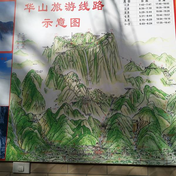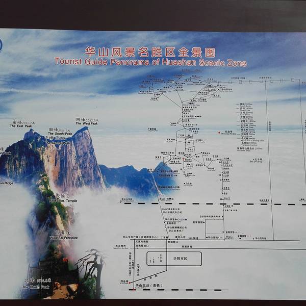 - 西上北下:西峰➠南峰➠东峰➠中峰➠北峰。优点是下楼梯的路段多一些。