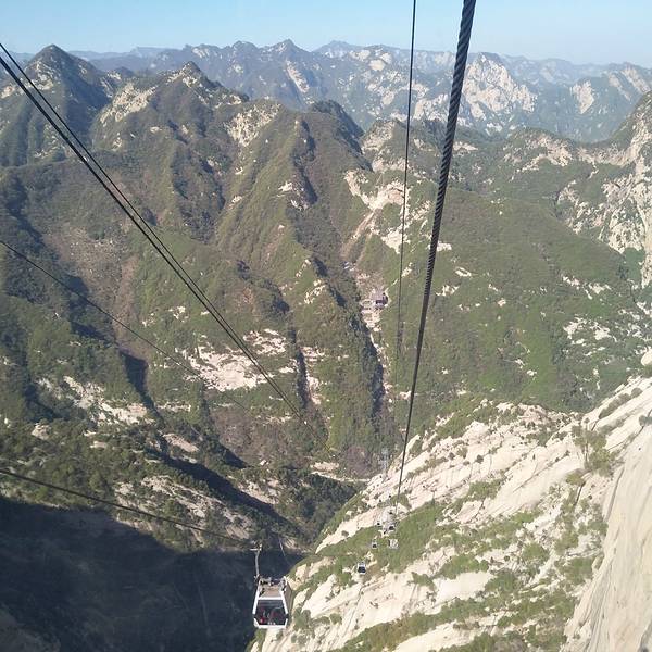 到华山建议游玩时间2天,在山上住一晚最佳。所以千万别跟当地旅行团。我们在回民街附近报了一个,早上一早去上车,结果在市区内到处兜散客,最后8点多才出发。到了以后还要换景区的接驳小巴。这还是另外收费的20多块钱。坐索道上山已经是快11点了,导游还限定我们2点多在山下集合,不然自行返程。时间紧迫得不行,最后没登上最高的南峰是一大遗憾。看惯了南方矮小如丘陵的山,以为山就是那样了。直到来到华山,崇山峻岭,它的陡峭,它的险恶,它的壮丽让我咂舌。自古华山一条路,如果从“智取华山”开始步行,估计要累趴了也不一定能到顶。所以现在有第二条路了,先坐索道沿“智取华山”的小道上空飞架,直到北峰。出来后再继续向上爬。北峰是最矮的,南峰是最高的,两者相差了500多米。我游览的时候是北峰-东峰-西峰-中峰,时间不够,西峰以后没有继续上南峰。上山一定要买手套,爬山爬山,在华山是真的得手足并用,几乎以爬的姿势在登山(途中偶尔有平路)。山上山下温差大,山下短袖即可,山上就得加长袖外套,或许还会遇到变天,下一场过云雨,加上山风,就更冷了。山上有卖吃喝,但售价都比较贵(一瓶水根据山高,5-10元不等)。想想人家都是怎么运上去的就觉得值了。