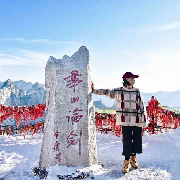 金骆驼 最佳徒步线路是从玉泉开始徒步,一路经过北峰,中峰,东峰,南峰,西峰,这一路上会遇见一些比较陡的...华山是中国著名的五岳之一,海拔2154.9米居五岳之首,位于陕西省西安以东120公里历史文化故地渭南市的华阴县境内,北临坦荡的渭河平原和咆哮的黄河,南依秦岭,是秦岭支脉分水脊的北侧的一座花岗岩山是国家旅游AA...华山是中国著名的五岳之一,海拔2154.9米居五岳之首,位于陕西省西安以东120公里历史文化故地渭南市的华阴县境内,北临坦荡的渭河平原和咆哮的黄河,南依秦岭,是秦岭支脉分水脊的北侧的一座花岗岩山是国家旅游AAAAA景区,冬天登华山也别有一番感觉,晒着暖洋洋的太阳,一点都不感觉冷,最佳徒步线路是从玉泉开始徒步,一路经过北峰,中峰,东峰,南峰,西峰,这一路上会遇见一些比较陡的坡,一定要抓稳两边的铁链,很是刺激,一路的小猫也是很招人疼,当你看见华山论剑的里程碑的时候,感觉自己就是武林中人,等人来向你宣战,冬天的华山没有旺季时的热闹,但我更喜欢这种感觉,毕竟安静而又壮观,美哉,一路上你会看见从西峰那里走过来的游客,大多数是选择从北峰坐缆车下去,索道费40元,站在山顶你会看见蓝天白云,雪❄️与山的结合,很像一幅油画,由于西安雾霾重,你会看见一层明显分割的霾,没有经常登山运动的朋友们,登山的时候记得戴手套,一定要做拉练,结束后一定要按摩脚和泡脚,由于是淡季去的,门票是100,西峰索道120元回市区的车子是40元,西安有直接到华山的高铁票,时程大概是在50几分钟左右,票价好像是50几元,火车站到华山景区你可以坐出租车20元左右,15分钟。或者在火车站坐公交3块多到华山游客中心下,不到20分钟。