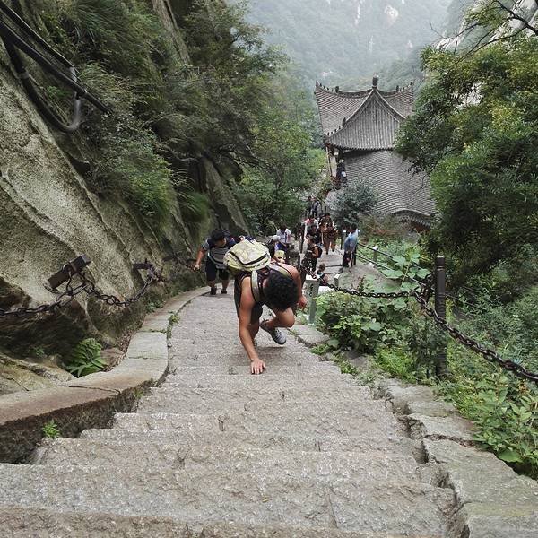- 如果害怕高度,不用担心,接近90%的楼梯都很短,旁边也可以绕行,最可怕的是长空栈道。