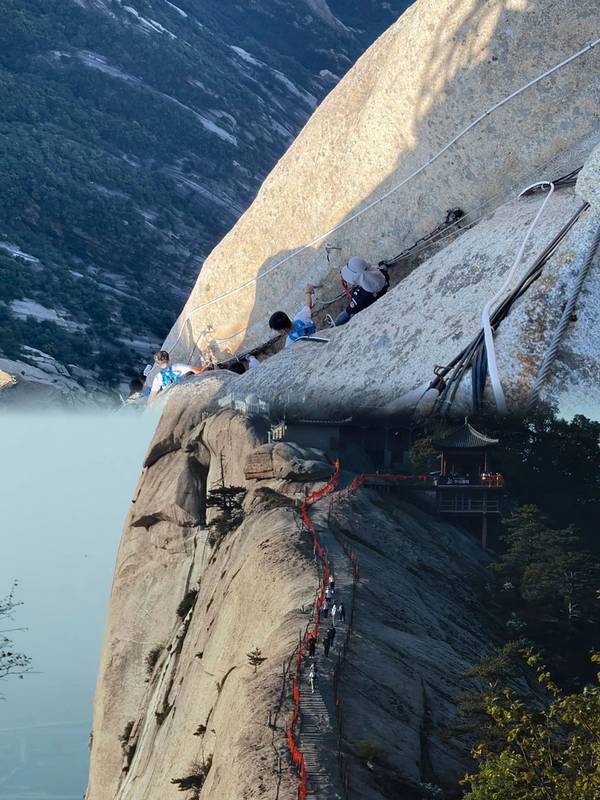 - 北上西下:北峰➠苍龙岭➠中峰➠云梯➠东峰➠南峰➠西峰。这是非常经典的路线,可以体验到华山的全部风景,上山索道排队时间相对较短。