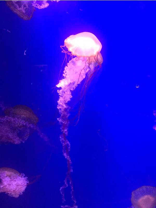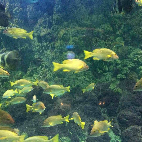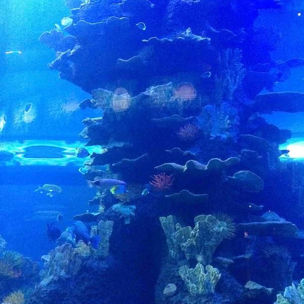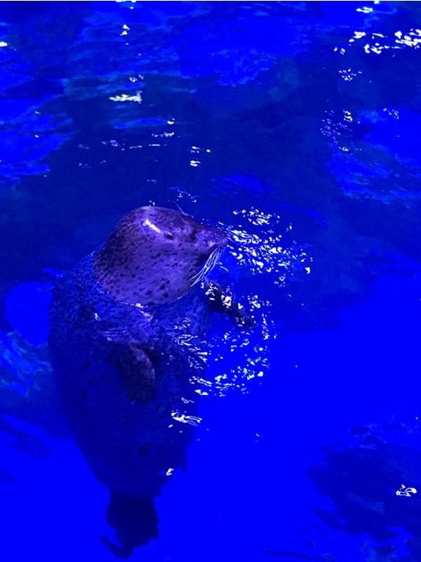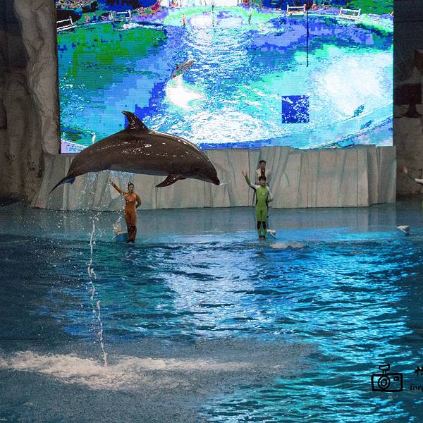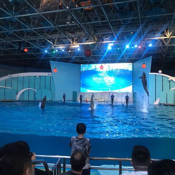 看完欢乐剧场表演我们赶紧进了极地馆,因为里面还有一个海豚的表演,所以我们一直注意着时间,提前了20分钟到表演馆占位置。表演馆真的很大,人也超级多,好在我们早点来了,占了个好位置。海豚海豹表演跟欢乐剧场的表演有部分是重叠的,但是最精彩的是海豚的表演,特别是海豚跳跃的时候,真的是太美了,好激动!这个表演很精彩,大概30分钟。看完表演我们出了表演馆继续参观极地馆。看到了很多好漂亮的,从来没见过的鱼,色彩斑斓。