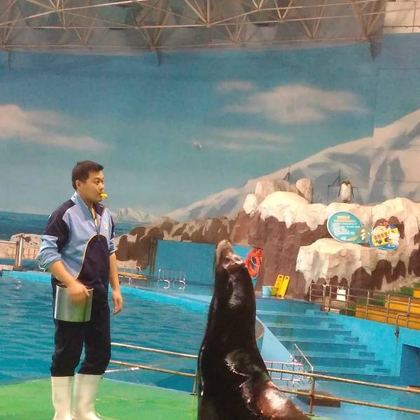 海洋馆里面能看见白鲸、北极熊、海狮、企鹅、北极狐等等!一定要早去,最好开馆就进去。这个场馆会有各种表演,进馆后有小屏幕会显示各个表演的时间。