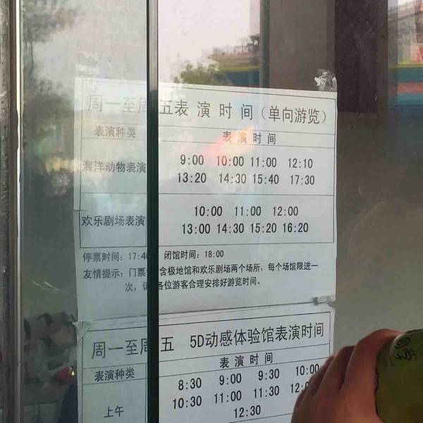 实用 想好好玩儿的话,不要假期去吧…感觉没有大连的好。(附上场馆表演时间表…具体请以景点通知为准)提供一个小信息,不知道有人发过没有。70以上老人免费,但是要去游客中心拿身份证登记信息填一张景区免责声明,然后再去窗口专用票。有这种情况的老人先去填这个表格,再去买票。我就排了两次队…暑假人特别多,...提供一个小信息,不知道有人发过没有。70以上老人免费,但是要去游客中心拿身份证登记信息填一张景区免责声明,然后再去窗口专用票。有这种情况的老人先去填这个表格,再去买票。我就排了两次队…暑假人特别多,不建议去 场馆里孩子全都坐大人肩膀上,离玻璃最近的地方每个人都两米多(・_・ヾ 什么都看不到,表演还可以。想好好玩儿的话,不要假期去吧…感觉没有大连的好。(附上场馆表演时间表…具体请以景点通知为准) 展开