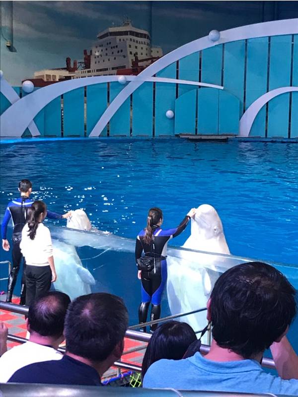 买票的话说是有欢乐剧场,其实就是里面的动物表演,大概15分钟,感觉表演的海豚...好惨...场馆周边环境倒是挺漂亮的,不过周边吃饭的地方坑死...去哪儿旅游都不要去景点周围吃饭...外面看起来还不错大白鲸,游客拍照各种闪光灯= =..苦逼白狐...里面几个白狐毛都黄了,然后有一个想上厕所,转了好几圈就直接拉另一个身上了...简直- -!!!QQ馆内一些布景做的还是不错的人巨多,整个过程随波逐流...找人少的地方喘口气都不行...15分钟小剧场,演完了还能和小动物合影,80块钱一次打架的...躺地上一个大妈,哪边躺地上一个安保...后来这个门封上了不让出人,这个堵的...