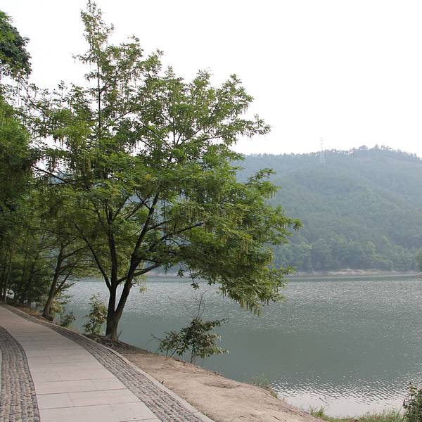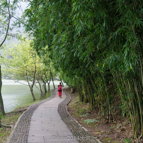 一进门就看到这样的湖光山色,美得让人感叹。阴雨天也有一种别样的美。湖水清澈,天空的倒影清晰可见。两旁青山,映着水色。