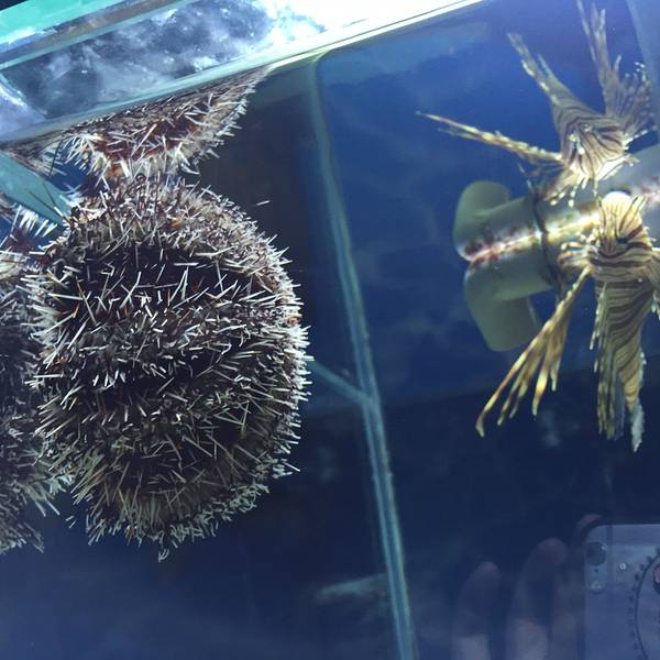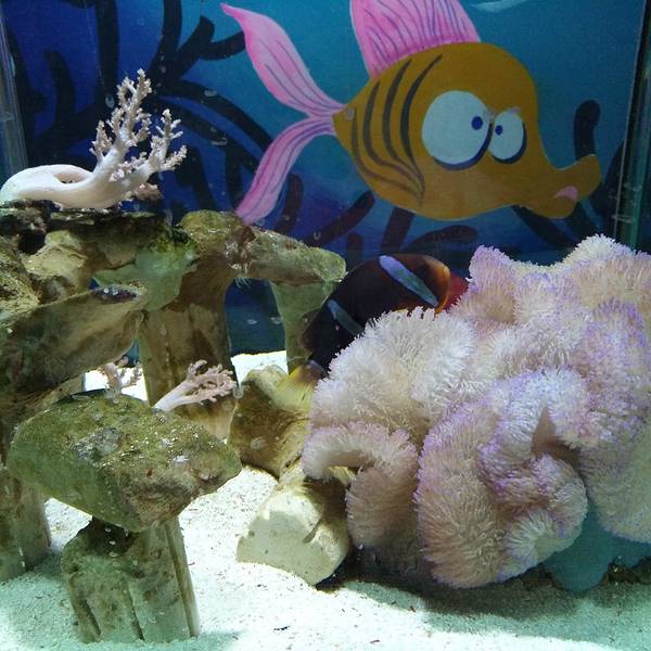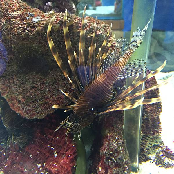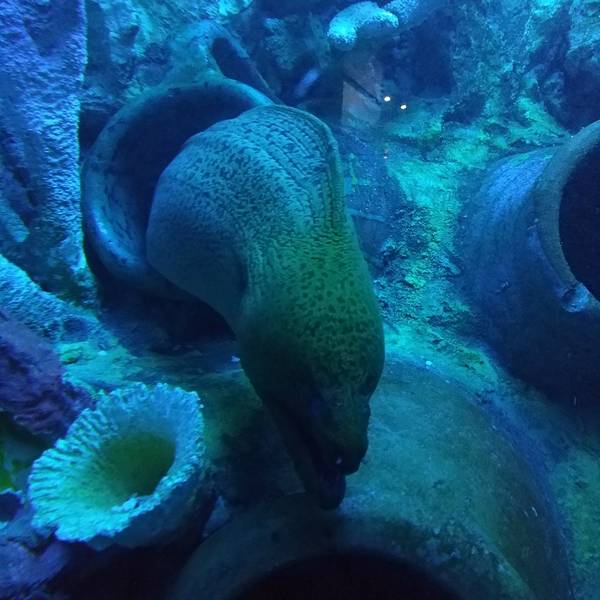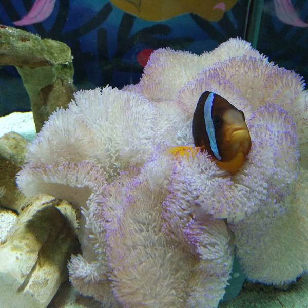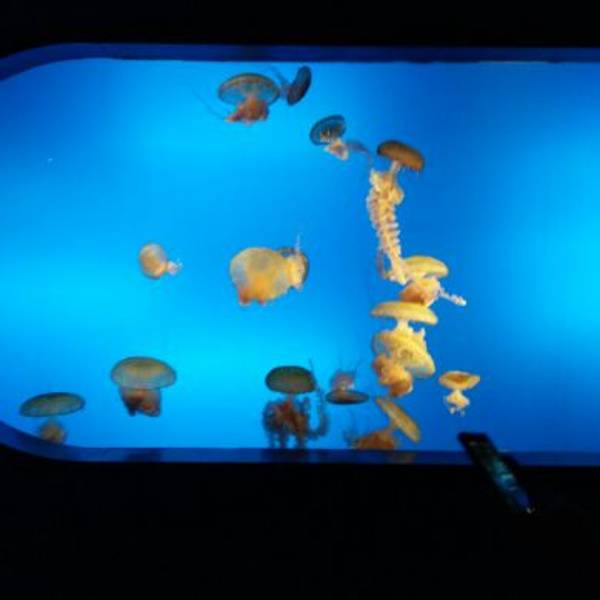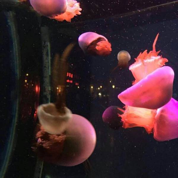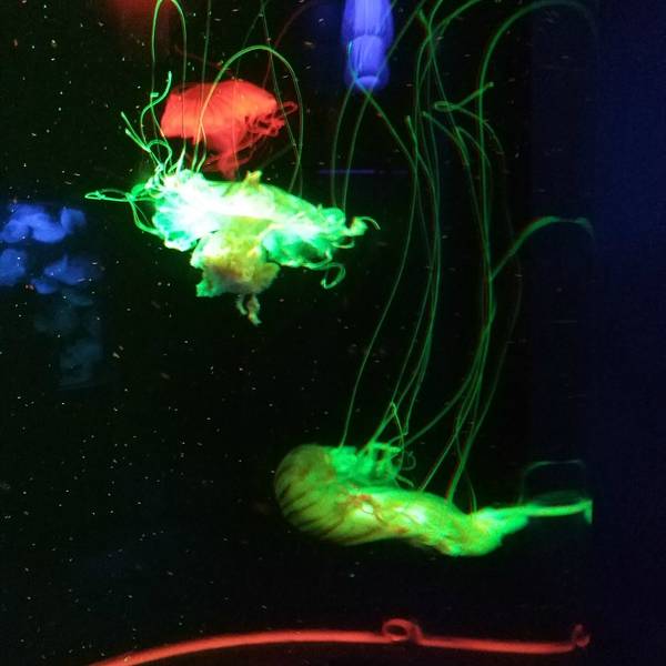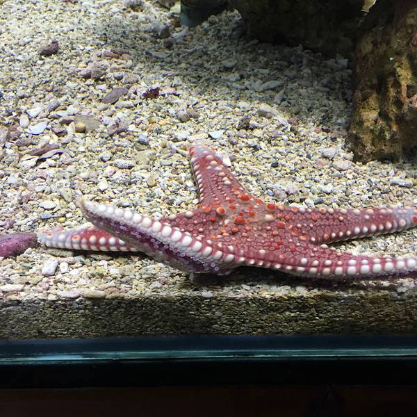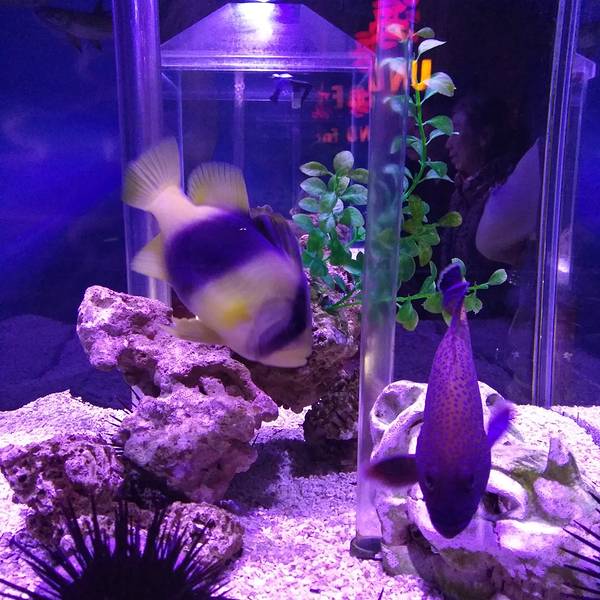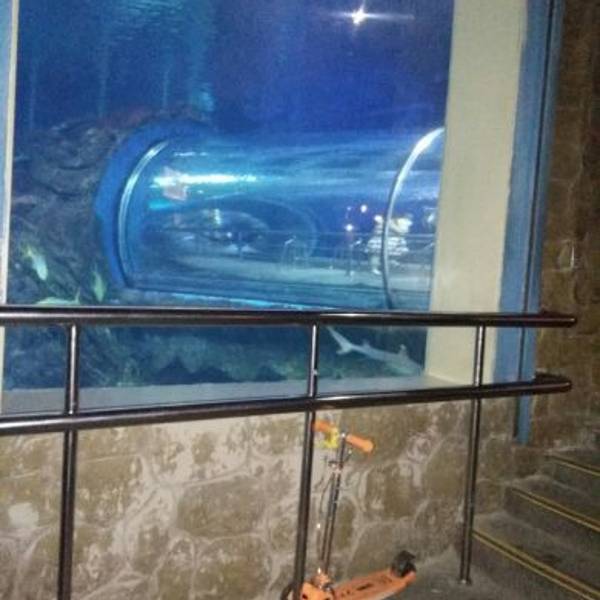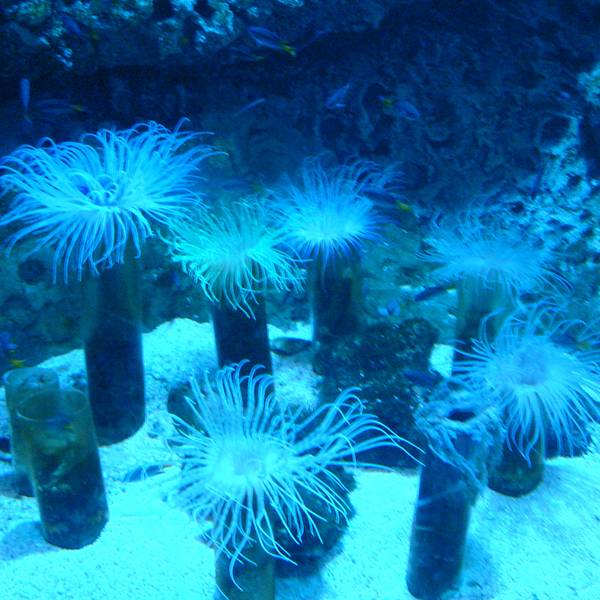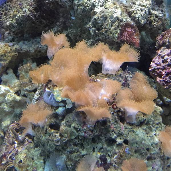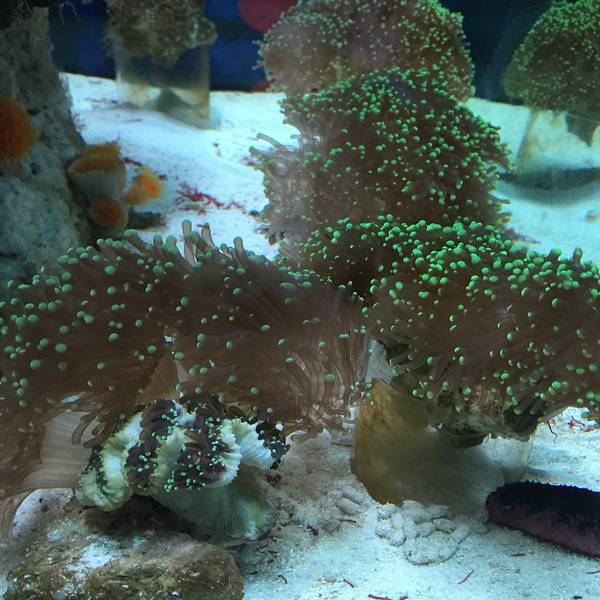 最好看的应该是那些陈列在玻璃柜子里的了,可能是因为旁边各种彩色砂石的衬托显得特别美,有海星、珊瑚、海胆等。还有水母也非常漂亮,而且是整面墙上都是水母,非常震撼。这边的表演非常一般,快要出门的时候听工作人员讲有表演,于是坐下来等了十分钟左右开始了,还以为是饲养员和动物的表演,没想到最后就是演示了五分钟潜水员在水里的各种装备而已,好失望。