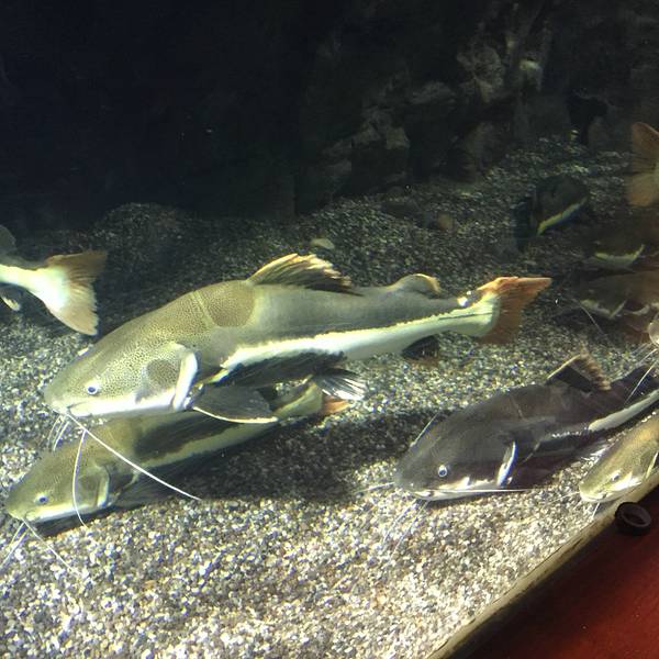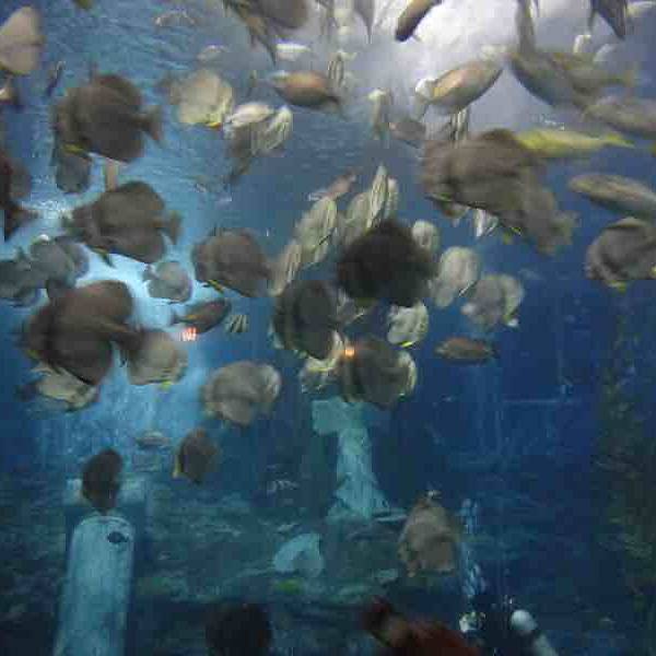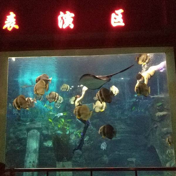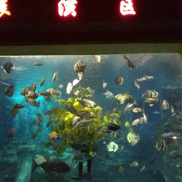 发现一池子的鱼心想这么普通的鱼,各个公园的池塘里一捞一大把的也能放在这里?后来看了一下牌子上写的是吃奶鱼,再看看旁边的饲养员手里拿的都是婴儿奶瓶,才顿悟原来人家的品种不一样 啊,好金贵的鱼,竟然只吃奶。这种长着长长“胡须”的鱼这边非常多。海底隧道我觉得一点也不好,不如之前看过的很多海底隧道,这边的海底隧道只有一半是透明玻璃,仰头只能看到一半的部分,大大影响了美感度。而且里面的种类也不是很多,没有那种一大群鱼簇拥过来的感觉。