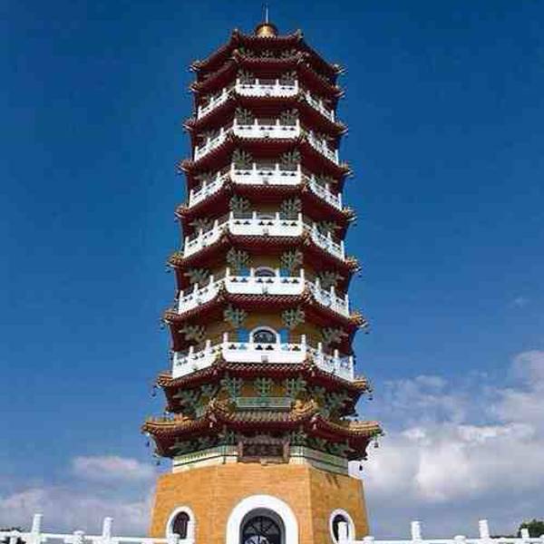 屹立于洞庭湖东畔的岳阳市西南隅,该塔建于唐开元年间(731-741)。现存塔为宋代重建,砖石结构,七级八角实心。塔高39米,塔尖铁相轮重约2吨。从第二层起,每层有小佛龛。该塔为湖南现存最早的古塔建筑之一。慈恩塔的由来有不少传说,这里仅选其一。据说古时有一少女,父亲不幸抱病身亡。因家中贫困,流荡岳阳,无力安葬老父,少女只好“卖身葬父”。她的孝心感动了一位举人,举人便出资安葬了老人,并且带女子与自家的女儿作伴,后来此女子嫁了好人家,富贵无比。为答谢举人的恩情,特建成石塔,让后代铭记此恩此德。所以,这塔也就名为“慈恩塔”了。
