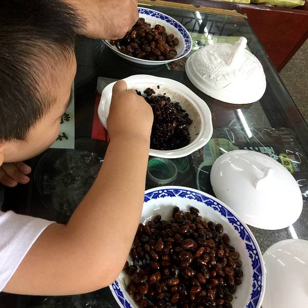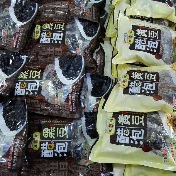 醋泡酸、萝卜干、黄豆、黑豆、糖,黄豆和黑豆15元每袋,糖25元每罐,黄豆的味道只能说一般吧。