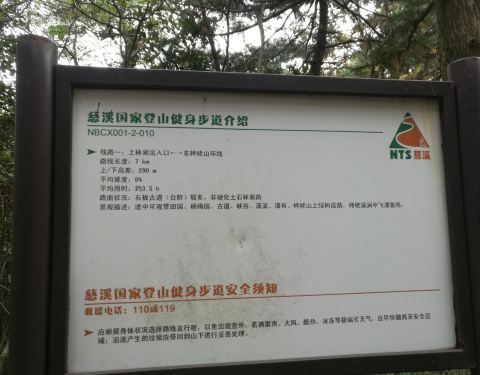 在入口处会有建议路线,我们选择了最短的一条,三点五公里往返,因为是山路加上...宁波栲栳山健身步道,位于慈溪。有两个进口,一个是上林湖越窑遗址这里,一个是方氏河头村这里。我们去的是上林湖越窑遗址这边。