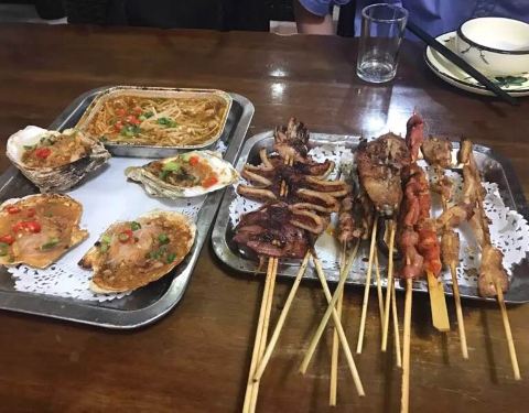 - 生蚝、扇贝、掌中宝、烤茄子,羊肉串都不错。位置就在玉古路上,离黄龙体育中心不远。停车场停车很方便两口