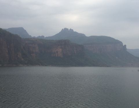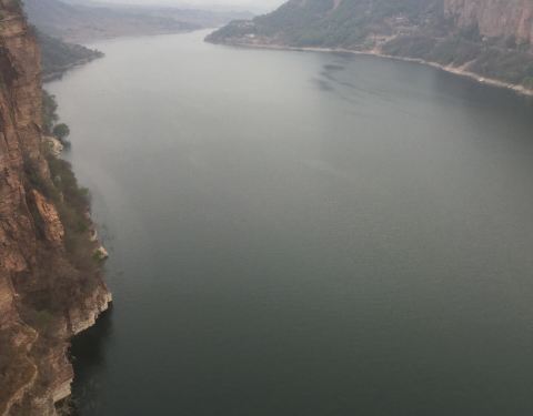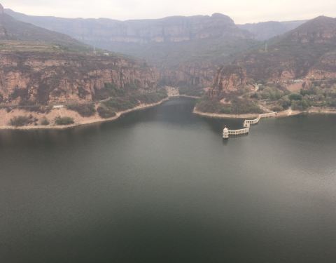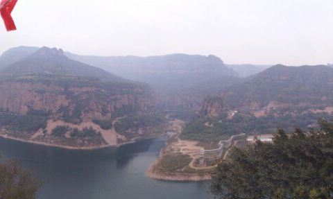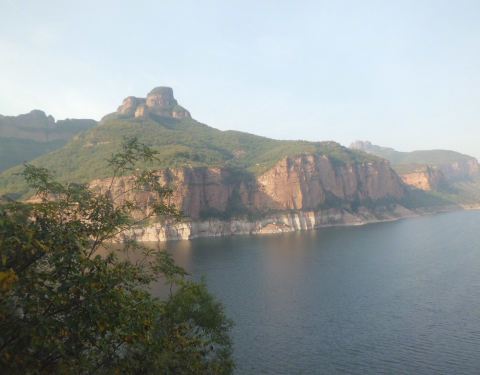 秦王湖面积约9平方公里,湖面蜿蜒,忽阔忽窄,沿岸立仞千尺,形成高崖环湖,奇峰回列的壮观景像