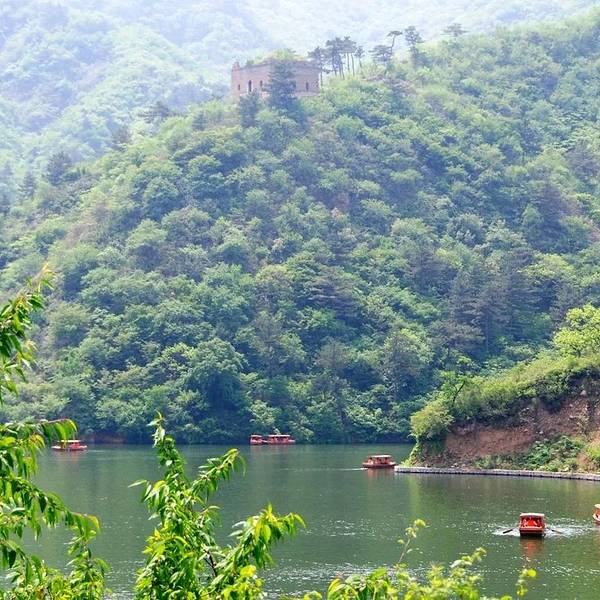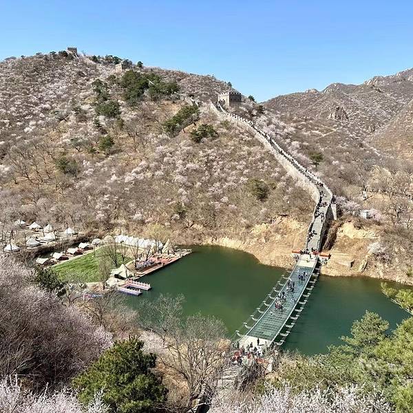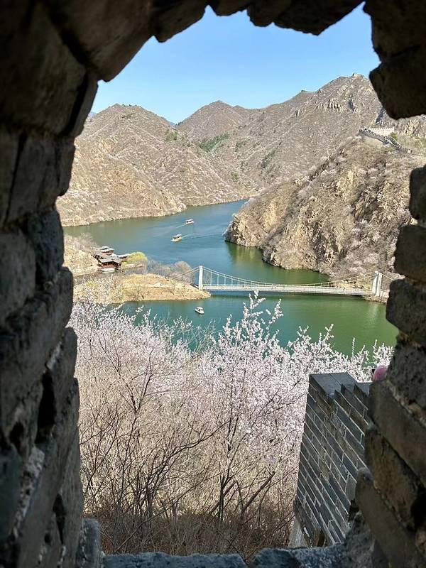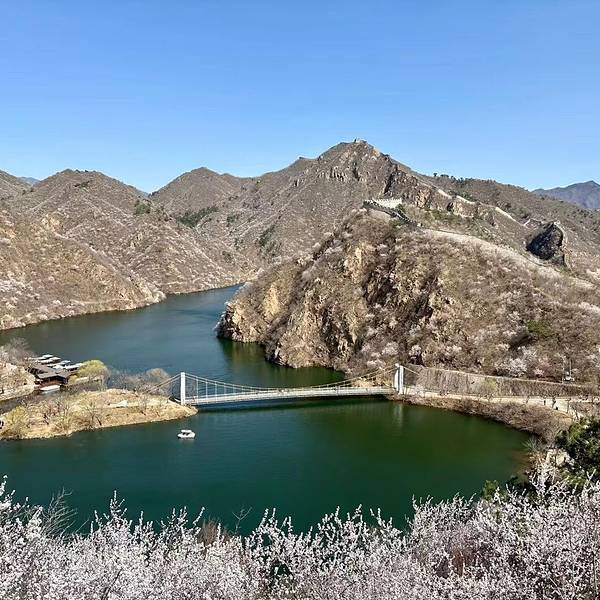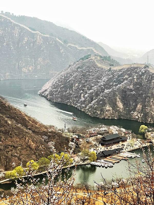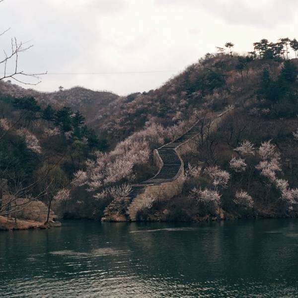 而且这里除了长城还可以在春天看到漫山遍野的山桃花。非常的好看~水中长城景观又是不可多得。