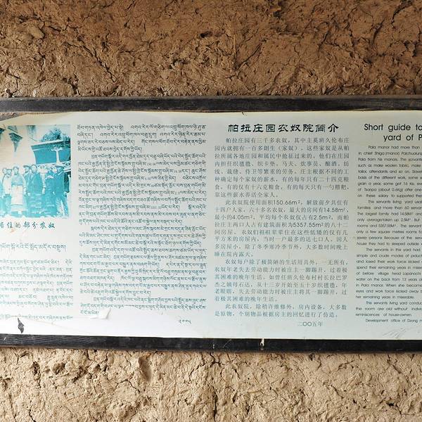 农奴院子值得参观,大门高度也就1.5米,进去参观游客都要弯腰才能进入(也就是过去奴隶们进出都要...帕拉庄园是西藏大贵族帕拉家族的主庄园,全称帕觉拉康,位于江孜县城西南约4公里的班觉伦布村,是目前西藏唯一保存完整的旧西藏三大领主贵族庄园。现存房屋57间,面积5357.5平方米,主体楼高三层,建筑配套完整,...帕拉庄园是西藏大贵族帕拉家族的主庄园,全称帕觉拉康,位于江孜县城西南约4公里的班觉伦布村,是目前西藏唯一保存完整的旧西藏三大领主贵族庄园。现存房屋57间,面积5357.5平方米,主体楼高三层,建筑配套完整,装修考究,设有经堂、日光室、会客厅(上接待室)、卧室,还有玩麻将的专用大厅。房内雕梁画栋,富丽堂皇。 帕拉庄园门票30元/人,开放时间:9:00~18:00。农奴院子值得参观,大门高度也就1.5米,进去参观游客都要弯腰才能进入(也就是过去奴隶们进出都要弯腰曲背才行)。整个农奴的院落更是十分阴森,从院子里面的设施不难想象农奴过着非人的生活。 每天参观的人和旅团很多,门口附近有很多小地摊卖水果,水果特别好吃。还有一种贵族糌粑,比普通糌粑好吃太多了,非常贵,两个小方块5元,我只在这个地方见到这种糌粑,而且只有一家店在卖,并且贵族酸奶也是超级好吃的,酸奶里加了糌粑,味道十分好,优于普通酸奶。 展开