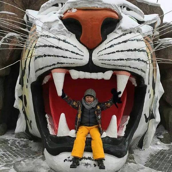 进了威虎山门,有地陪领着我们走进去,看看雪,可开心了,一路拍拍照。朋友说这张图最好看,因为看不到脸进了威虎山门,有地陪领着我们走进去,看看雪,可开心了,一路拍拍照。
