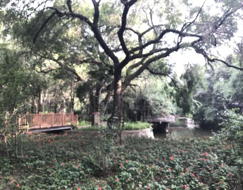 历史比较悠久的一个公园,绿化覆盖率很好,绿水环绕,空气清新,很适合休闲散步,有名人题词,算比较知名景点,主要是那座吊桥并得名
