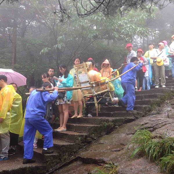 PS小故事:我们第一天爬黄山,第二天游览东线的九龙瀑时很是疲惫,但是景色很美,所以很兴奋,进入景区大门时,抬轿子的师傅眼尖,直言我们的状态肯定爬不上去,非要我们乘坐轿子上去,我们断然拒绝,不过我们是打着节拍一二一走上去的,哈哈,里面有很多台阶需要爬! 展开