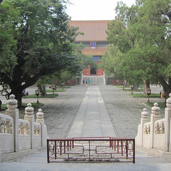 孔庙不大,三进的院子。和 北京 其他很多的古代建筑风格类似, 比如 ”大成门“后面的甬道尽头就是”大成殿“(故宫就是”乾清门“-”乾清殿“等等)