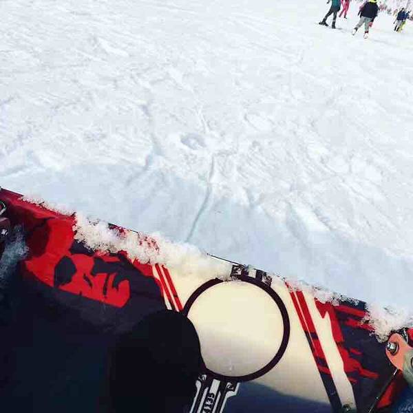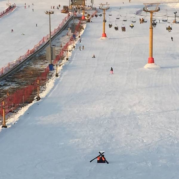 真正开滑的时刻来到了,老公是会滑的,一边拉着孩子一边教,我就旁听,感觉差不多了就直奔初级道。在“传送带”上我还信心满满,等站在“高高”的起点,我就开始打鼓,老公和儿子直接开滑,小朋友也是第一次滑,怎么一下子就会了,还滑的挺快,转眼就混入人群,可怜我一点点往下出溜,稍一加速就慌了,然后迎来了第一个大屁蹲儿。真心起不来,还要费力脱下雪板,有好心的姑娘来帮忙,目测也是刚被人帮忙爬起来就来帮我了。好不容易起来了,拿着板子站到雪道中央,一姑娘冲着我就来了然后直接坐地上,我又赶紧帮她站起来,然后我又坐地上了,她又来帮我……我的处女滑就在帮人与被帮的混乱中,看着老公和儿子又出现在眼前才正式开始。先让老公教了怎么刹车,然后我小心翼翼有惊无险的终于滑下去了。