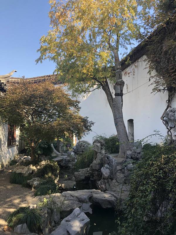 悬挂在路边的衣服,时而走过巷弄的老人和小孩,让原本静态的画面,成为动态的场景。如果来得及,愿意花上更长的时间仅仅只是待在这样的巷子里。虽然落破,但是整洁干净,那些斑驳的痕迹成为独特的装饰,让人值得一点点摸索和寻找。苏州园林之美,自然不必多说,艺圃的特质并非小众,而是难得的清雅。
