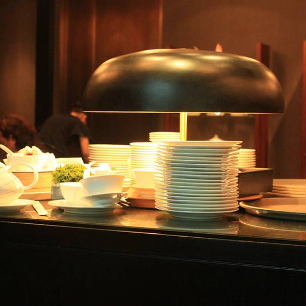 餐厅采用棕灰色调的设计,加入了复古台灯和瓷器等装饰品,营造出中西合璧的艺术视觉。这里主打粤菜和点心,...