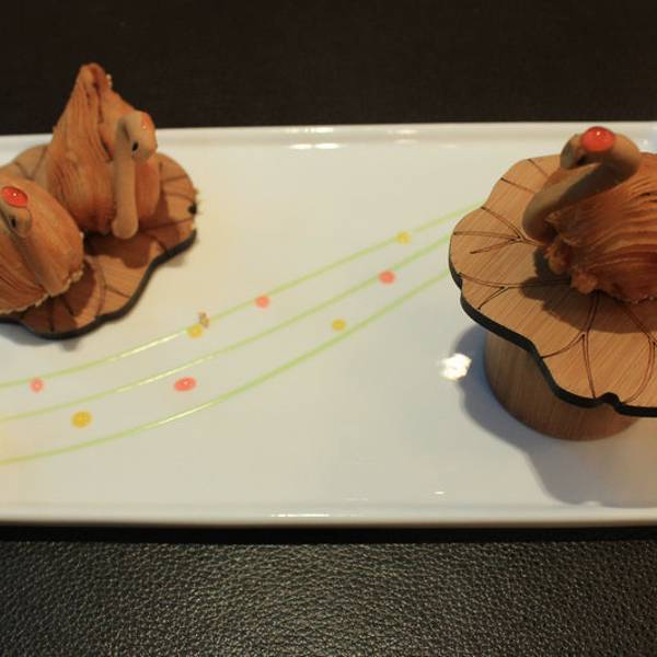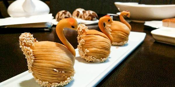 这些菜品不但漂亮精致,味道更是好吃各具特色,服务要特别赞一下,第一天我是一个人去的,龙虾本来是两份点起所以没有办法点,可吃了其它三样后还感觉差了一点点,后来服务员看我意犹未尽的样子,就去后厨帮我申请做了一份,当时甜品已经上来了,服务员说拿下去先保温,等吃过龙虾后再上甜品,我不好意思说不用太麻烦了,结果服务员告诉厨师这样的情况,给我加快做了龙虾,要保证我吃完龙虾后甜品还是热的,这样的服务太贴心了让人感动!第二天我又约了朋友再去换些另外的菜品,依然是那么好吃,更让人感动的是,服务员看我想多品尝几个菜品,那个天鹅酥本身也是半打6个点起,结果他帮我点了4个还是黑白天鹅搭配上的,真是贴心的让人感觉幸福!遗憾的是忘了问那个帅哥服务员的名字,连续两次为顾客着想贴心的服务,必须一下,下次来广州的时候你家是首选,谢谢厨师们,谢谢服务人员有你们让我感到无比的幸福