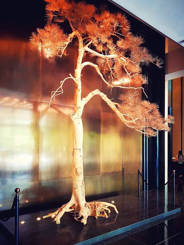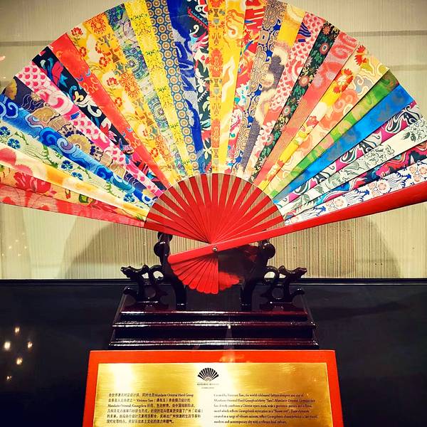 🏙MO给我的第一感觉是神秘,属于所谓东方的神秘。广州MO这把折扇运用鲜艳明丽的色彩,柔和中国传统戏曲脸谱与几何图纹及鲜花,出自设计师Vivienne Tam(谭玉燕),直观演绎花都之美。大堂入口的{精神之树}迎客松也是十分雅致。