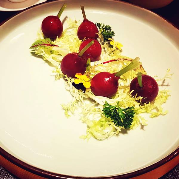 久负盛名的餐厅,多得土豪请客,星级酒店的装修,感觉有点私房菜的性质,出品真的很漂亮,很羡慕别人的心灵手巧,樱桃鹅肝惊喜连连,吃着开胃,雪媚娘跟平常吃的不一样,那很精致,但是吃着一般而已,叉烧不错,很香,价格偏贵,服务一直在线,满足。
