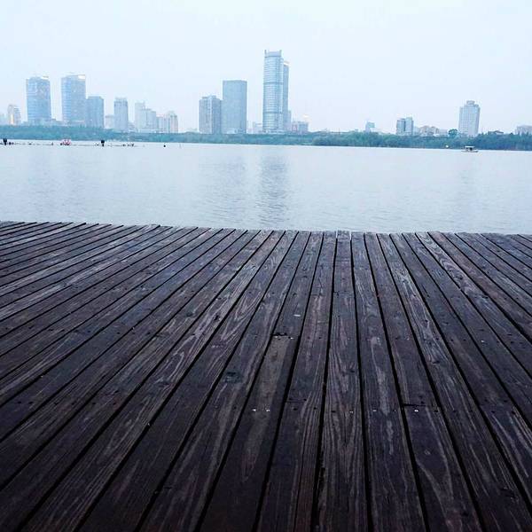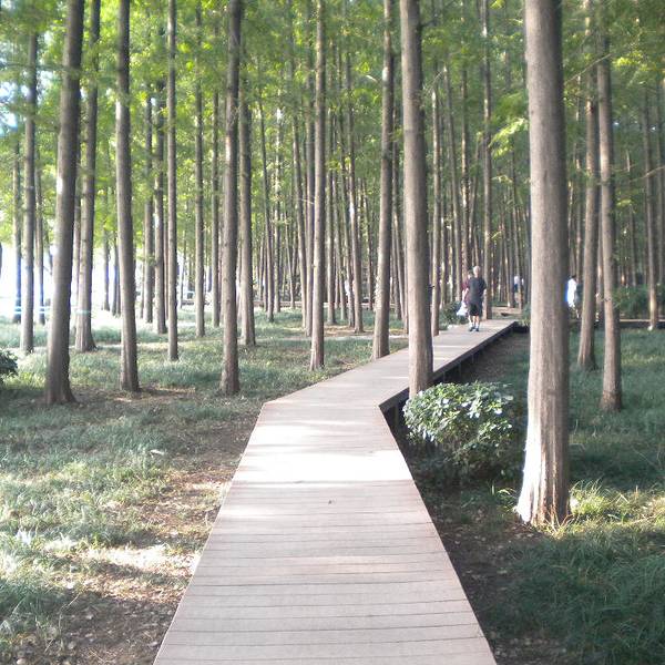 徒步在玄武湖的森林栈道里,让人觉得这不是在南京市区了,而是在郊外的一座森林里,看这冷色调的颜色即可感受到这里是空气质量是多么的美好了。