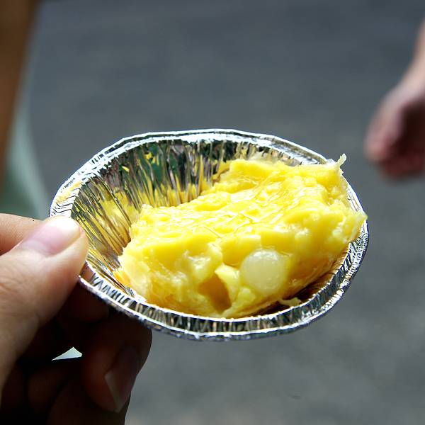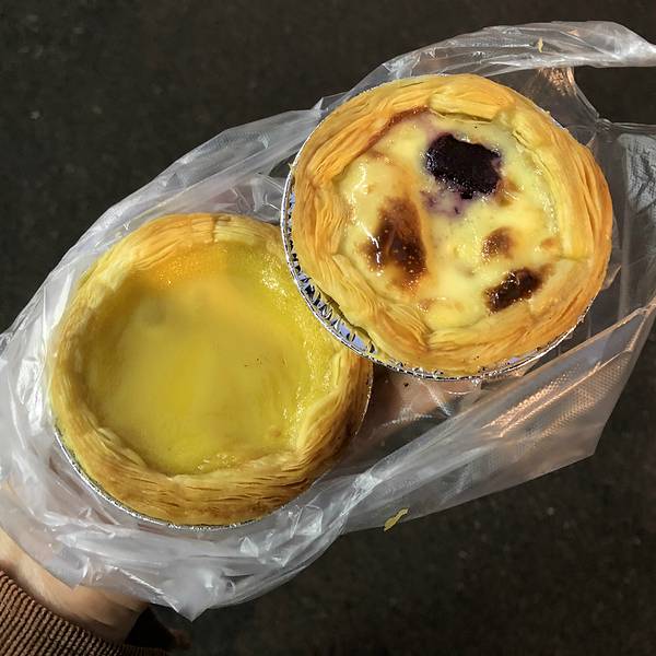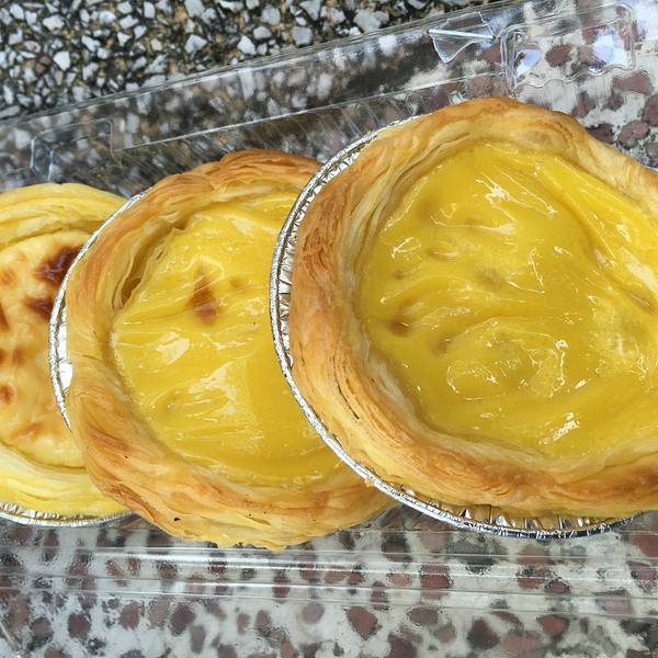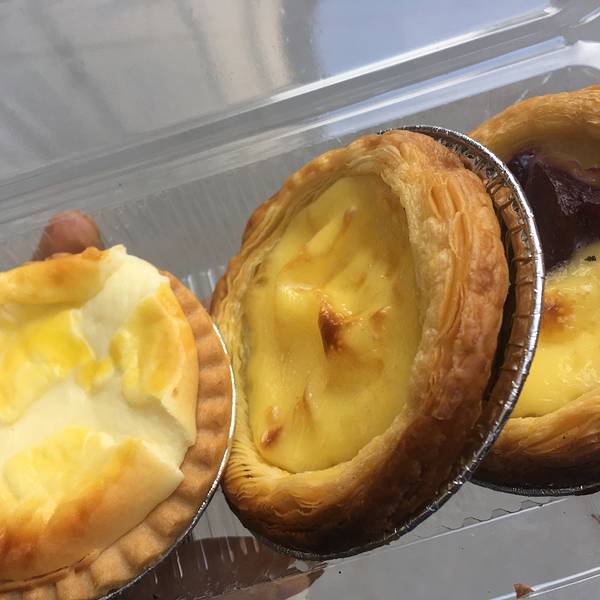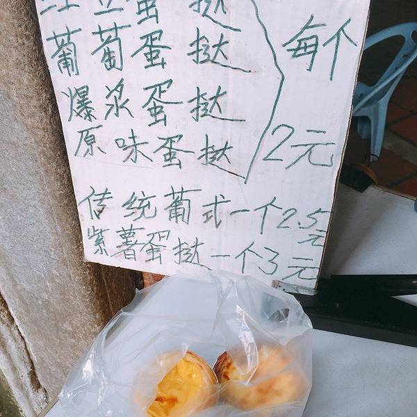 跟着攻略来这边拍照,本来以为很难找到的,没想到一转身就看到了。过去看了下果断所有口味来一轮,蛋挞加雪挞。雪挞第一次听到,有点类似冰皮糯米团子,那么热的天,吃这个正好!蛋挞雪挞味道都很赞!