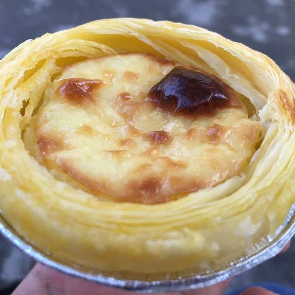 新鲜出炉的蛋挞滚烫非常好吃,牛油酥皮牛油味香浓,内馅蛋香味浓郁,口感松软香酥,甜而不腻
